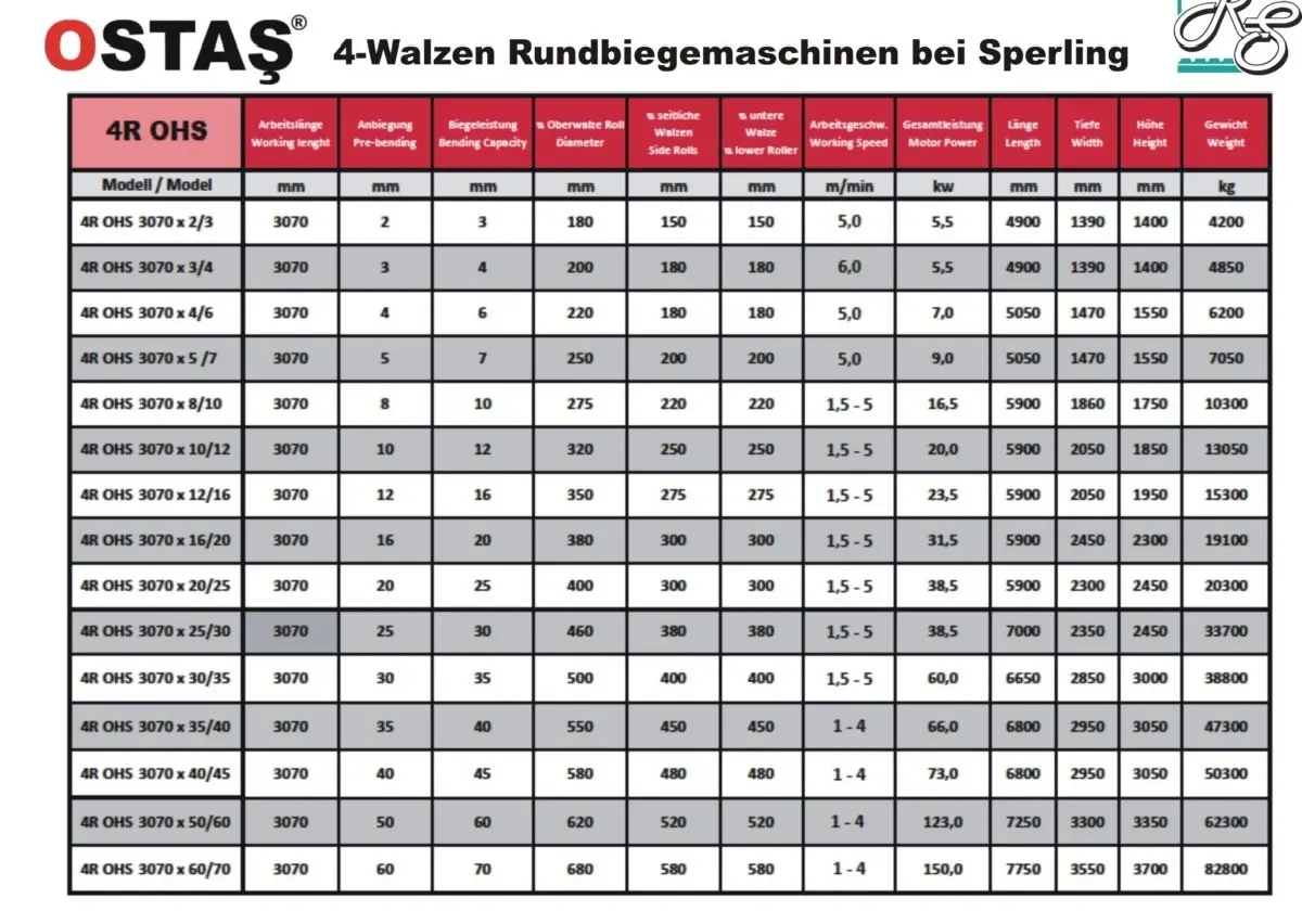 | Blechdicke Edelstahl | Materialien bis zu 55 mm Blech (ST 37) Walzen Die Walzen werden über |