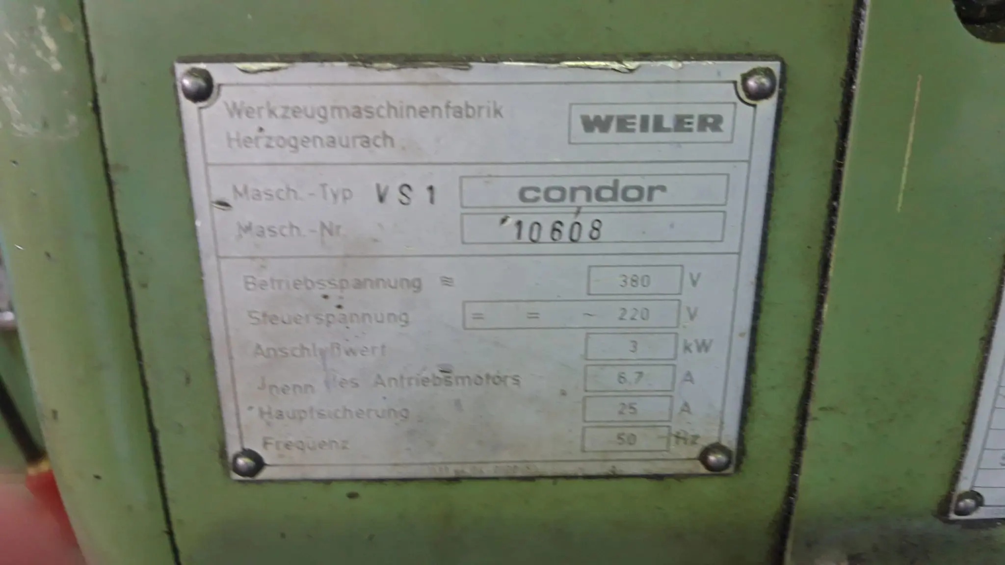 "Drehmaschine konventionell WEILER Condor VS 1, B.j. 1982 mit Vorwählschalteinrichtung"