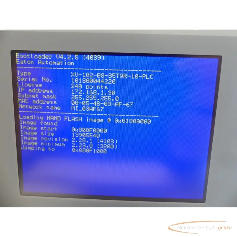 | Typ | Eaton XV-102-B8-35TQR-10-PLC Bedien-Tableau Version 03 SerienNr. 101300044220 |