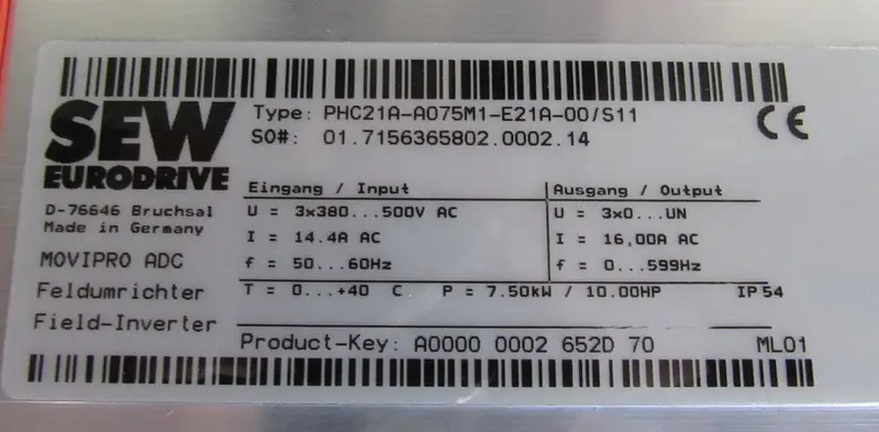 SEW Eurodrive ist ein Frequenzumrichter-Bauteil, das typischerweise in Drehmaschinen, Fraesmaschinen, Bearbeitungszentren usw. eingesetzt wird, um den Betrieb von Motoren/Antrieben stabil und effizient zu steuern. Passende Angebote finden Sie in der Kategorie Frequenzumrichter und im Bereich Ersatzteile für Werkzeugmaschinen.