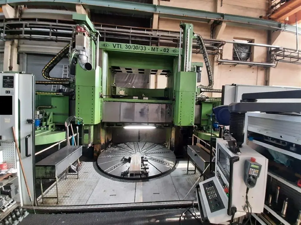 TECHNISCHE SPEZIFIKATIONEN: CNC Steuerung: SINUMERIK 840D powerline- Planscheibendurchmesser: 3.000 mm- Umlaufdurchmesser max.: 3.300 mm Werkstückgewicht max.: 30 t- Drehhöhe max.: 3.000 mm