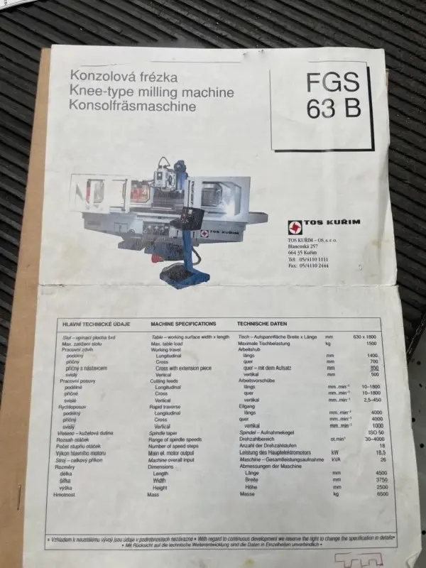 TOS-KURIM FGS 63 B Spindelkauf, Spindelreparaturen, Tauschspindeln, Neuspindeln.