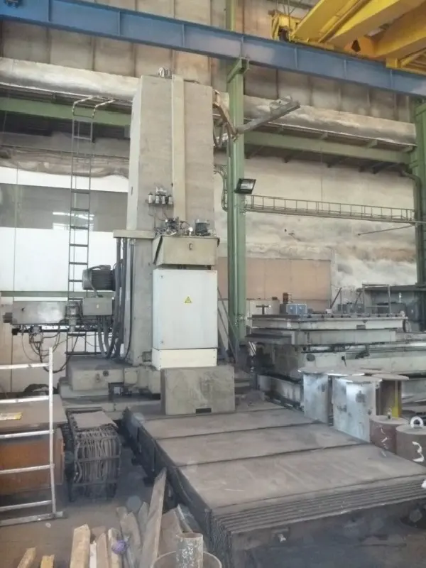 Plattenbohrwerk - Horizontal gebraucht in sehr gutem Zustand kaufen. Die Maschine wurde im Jahr 1984/1996 retrofit von der Firma WMW hergestellt und ist mit einer CNC Steuerung HEIDENHAIN TNC 360 ausgestattet. Die Tischfläche ermöglicht die Teile bis zu 1800 x 2000 mm befestigen. Die Baureihe BFP 130/6 CNC bietet es einen maximalen Verfahrweg von X-= 6000 Y-= 2500 Z-= 900 mm. Wenn Sie Fragen haben oder weitere Informationen benötigen, schicken Sie bitte eine unverbindliche Anfrage an den Verkäufer.Sie können Ihre gebrauchte Werkzeugmaschine schnell und unkompliziert erwerben.