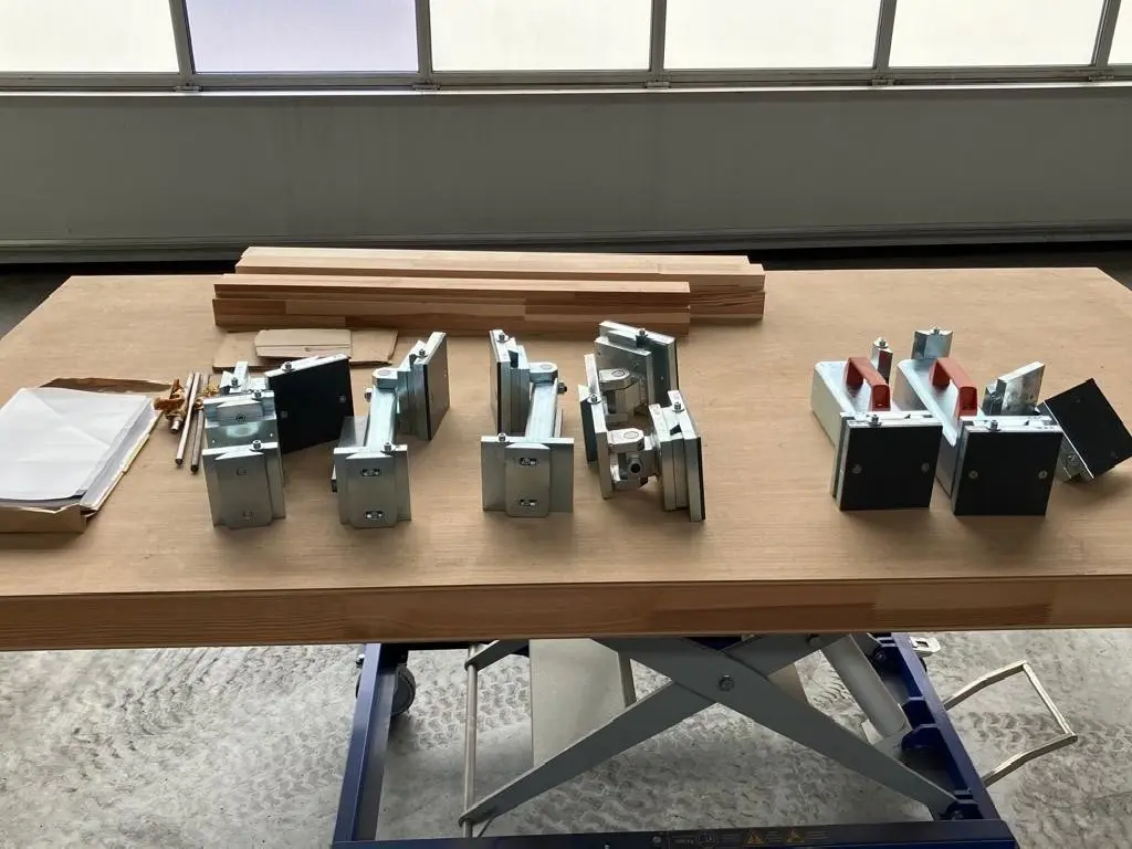 sämtliche Druckplatten und Widerlager mit Kunststoff belegt