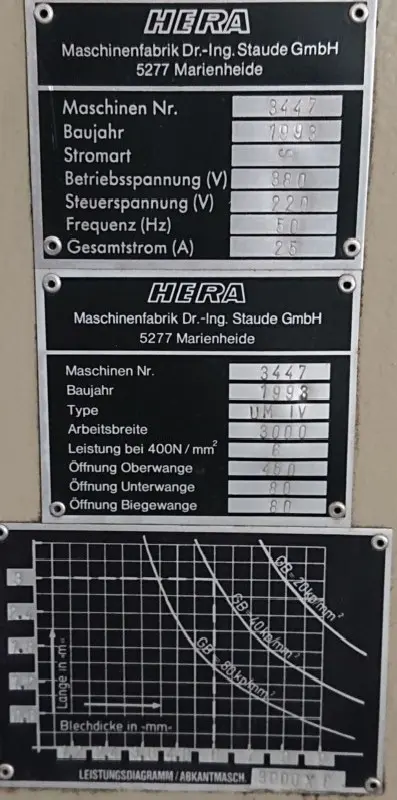 Gebrauchte Schwenkbiegemaschine HERA UM IV (Baujahr 1993) mit NC-Steuerung kaufen – Bewährte Leistung, Kosteneffizienz für Ihr Unternehmen