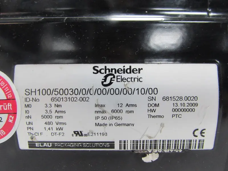 "Servomotor Schneider Electric SH100/50030/0/0/00/00/00/10/00 ID-No. 65013102-002 TESTED"