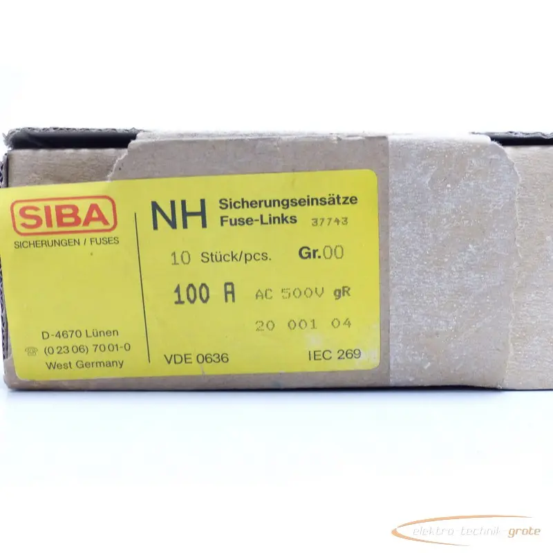 | Typ | Siba 100A Sicherungseinsätze NH 00 500V VPE 4 Stk - ungebraucht! - |