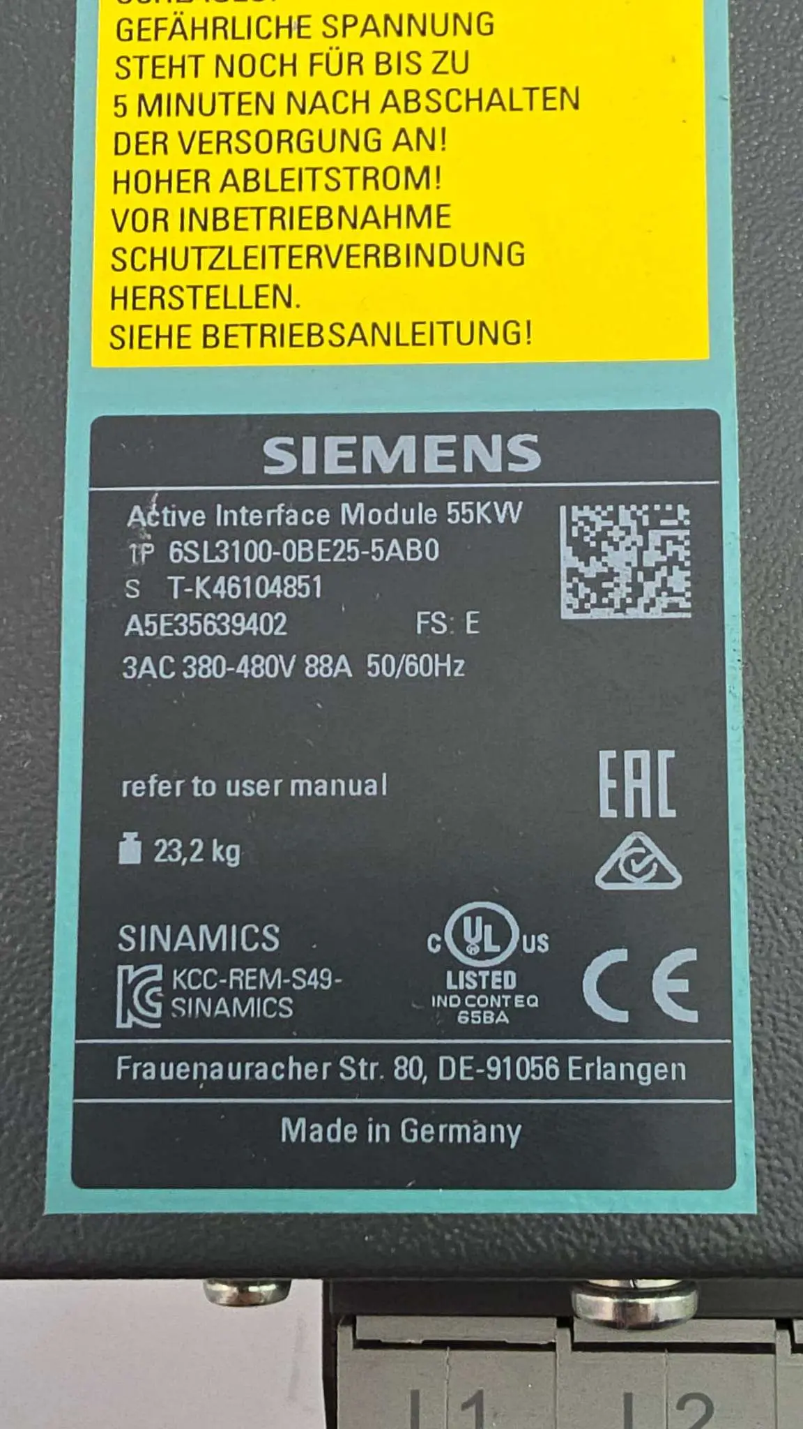 | Modell: | 6SL3100-0BE25-5AB0 |