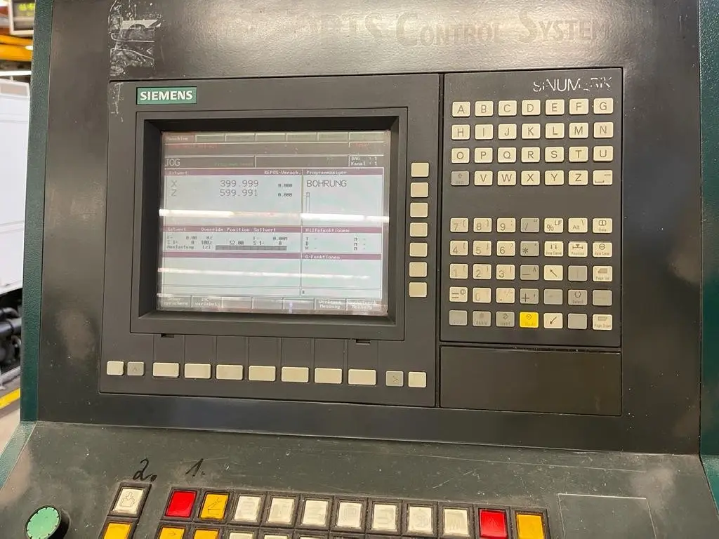 Die Maschine ist mit einer Siemens Sinumerik 840C Steuerung ausgestattet. Für viele Betriebe ist die Steuerung ein zentrales Kaufkriterium, weil Bedienbarkeit, Programmanpassung und Integration in bestehende Prozesse davon abhängen.