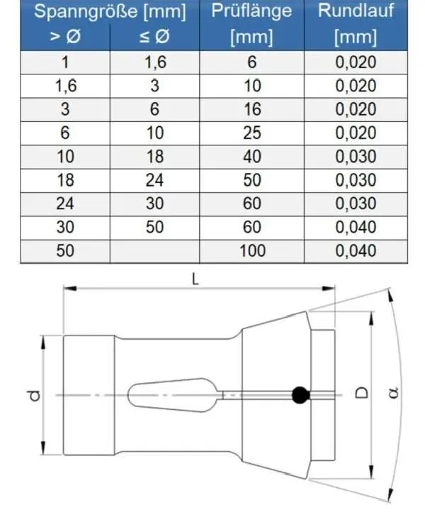 Druckspannzange DIN 6343, Typ 173E (F48 76-81) zum Spannen von Werkstücken bei hohen Drehzahlen.