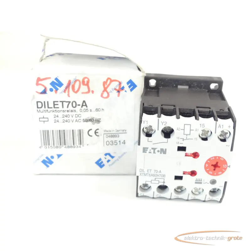 | Typ | DIL ET 70-A Multifunktionsrelais 0,05s…60h 24…240V DC/AC |