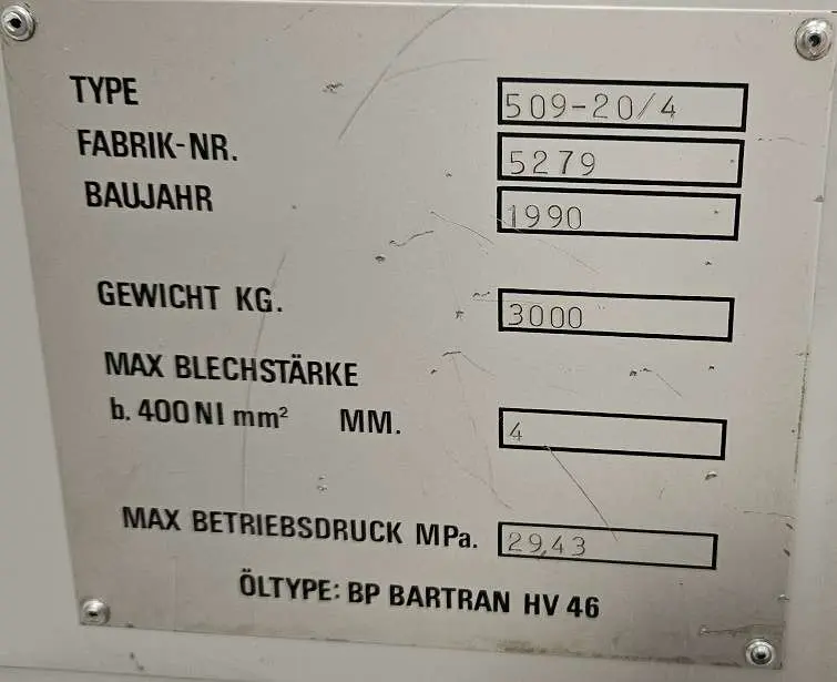 | Maschinentyp: | Tafelschere - hydraulisch |