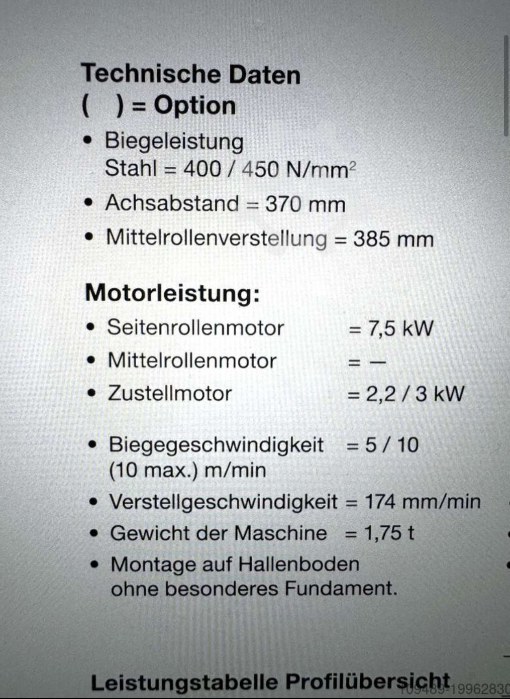 | Maschinentyp: | Profilbiegemaschine |