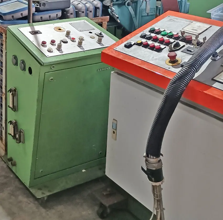Es fehlen Anschlußteile für Druckluft - Kabel zum Steuerschrank sind abgetrennt - Maschine ist nicht vorführbereit - daher wird die Maschine als defekt verkauft.