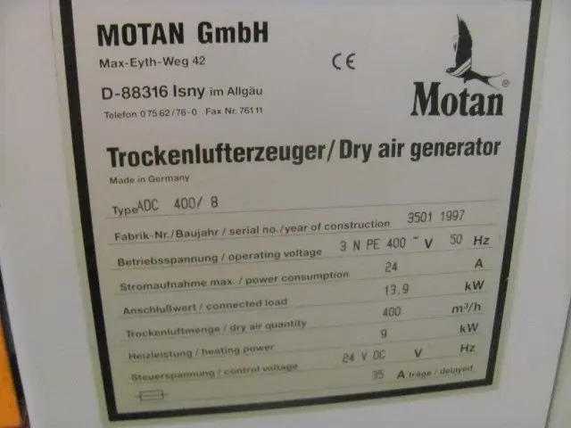 Motan Trockenlufttrockner Einzeltrockner ADC 400 400 m³/h Bj. 1997Professionelle Demontage, Montage und Inbetriebnahme für reibungslose Produktionsprozesse.