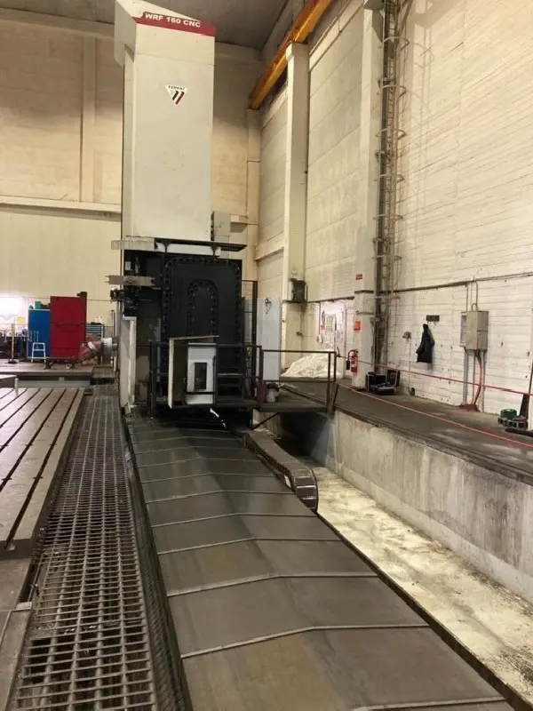 Plattenbohrwerk - Traghülse gebraucht in sehr gutem Zustand kaufen. Die Maschine wurde im Jahr 2014 von der Firma FERMAT hergestellt und ist mit einer CNC Steuerung Siemens 840 D ausgestattet. Die Spindel der Maschine hat max. Spindeldrehzahlen bis zu 2500 U/min. Die Spannvorrichtung hat eine ISO 50 Werkzeugaufnahme. Die Baureihe WRF 160 CNC bietet es einen maximalen Verfahrweg von X-14800 Y-6000 mm. Wenn Sie Fragen haben oder weitere Informationen benötigen, schicken Sie bitte eine unverbindliche Anfrage an den Verkäufer.Sie können Ihre gebrauchte Werkzeugmaschine schnell und unkompliziert erwerben.