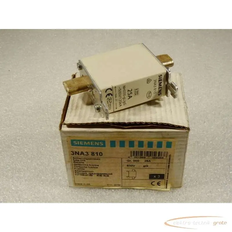 Siemens 3NA3810 Sicherungseinsatz 25 A VPE = 3 St < ungebraucht > in geöffneter OVP 100% leistungsfähig