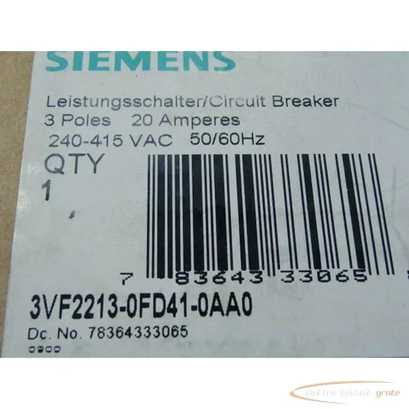 | Typ | 3VF2213-0FD41-0AA0 Leistungsschalter 20 A ungebraucht in geöffneter OVP |