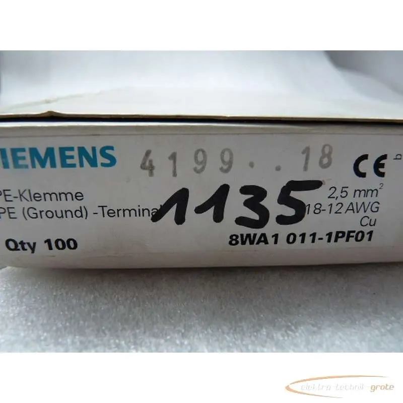 | Typ | 8WA1 011-1PF01 Schutzleiterklemme 2 , 5 mm2 VPE 90St ungebraucht |