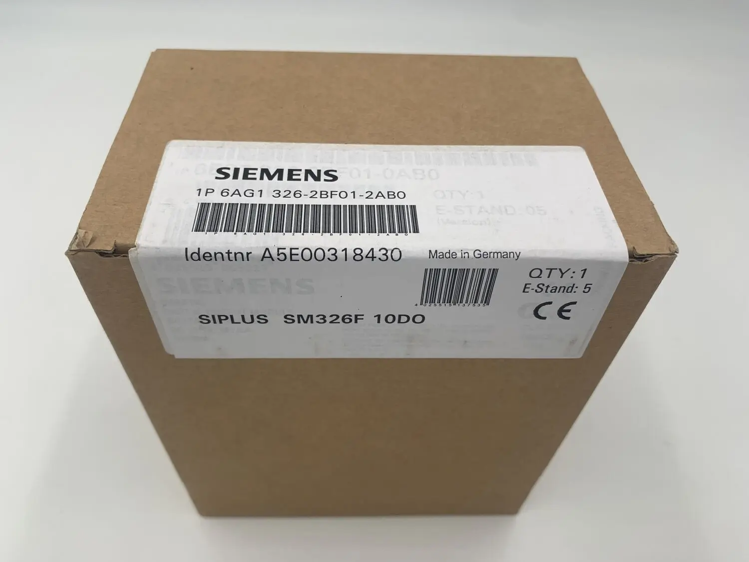 Ja, dieses Artikel / Item: [DE] Zum Verkauf steht ein (1St.) neue Siemens SIMATIC SIPLUS S7-300 SM 326F 6AG1326-2BF01-2AB0 basierend auf 6ES7326-2BF01-0AB0 6AG1 326-2BF01-2AB0 fehlersichere Digitalausgabe 10DA E-Stand: 5 Ersatzteil wird häufig in Gebrauchtmaschinen sowie Dreh- und Fräsmaschinen eingesetzt.