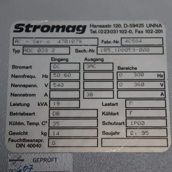 Stromag ADC 038.2 ist ein Frequenzumrichter-Bauteil, das typischerweise in Drehmaschinen, Fraesmaschinen, Bearbeitungszentren usw. eingesetzt wird, um den Betrieb von Motoren/Antrieben stabil und effizient zu steuern. Passende Angebote finden Sie in der Kategorie Frequenzumrichter und im Bereich Ersatzteile für Werkzeugmaschinen.